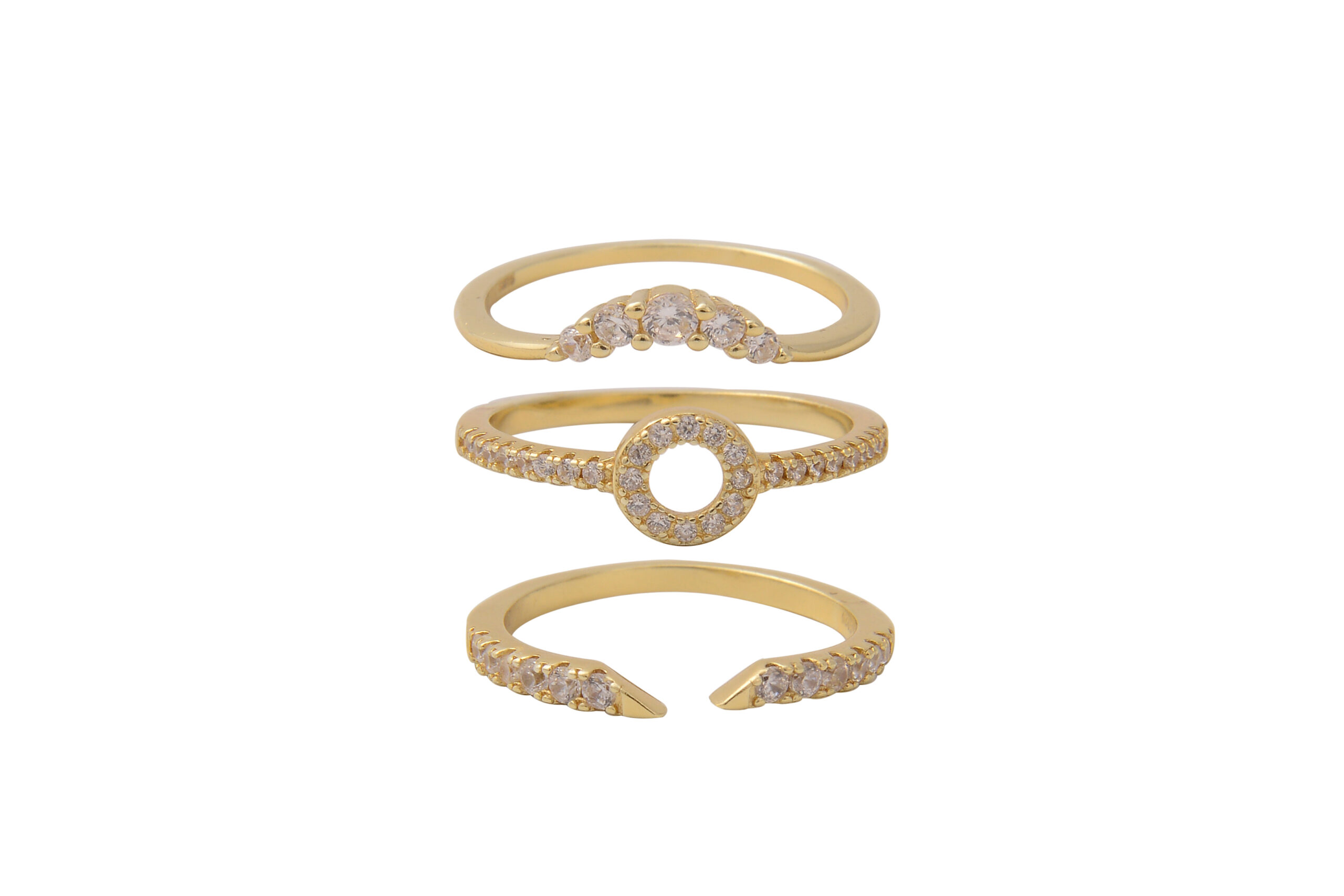 הטבעת עשויה פליז ומשובצת זרקונים
