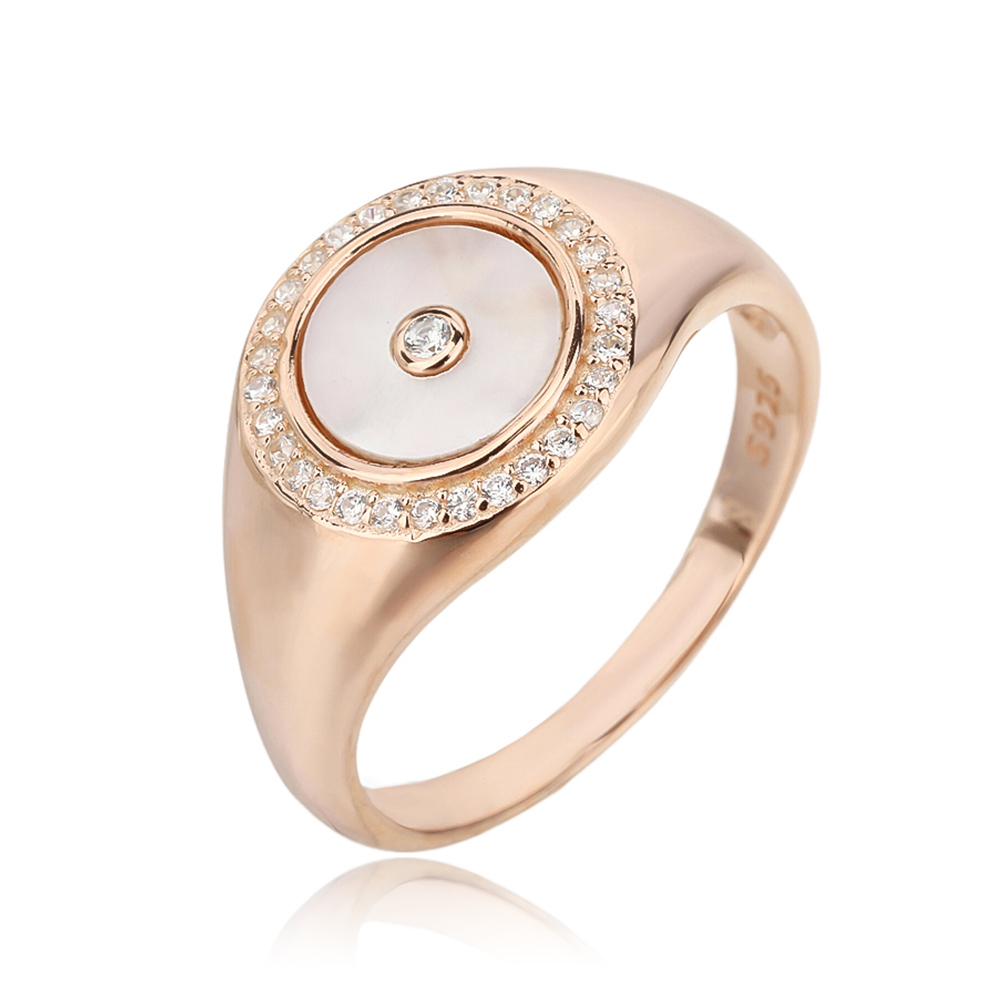 הטבעת עשויה פליז  ומשובצת זרקונים