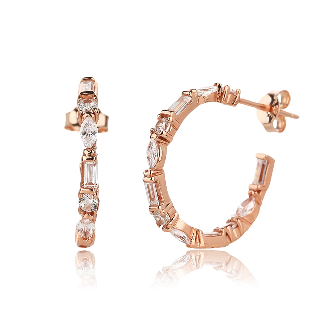עגיל ZSI349-15MM-2-כסף-כסף-רוז גולד-רוז גולד