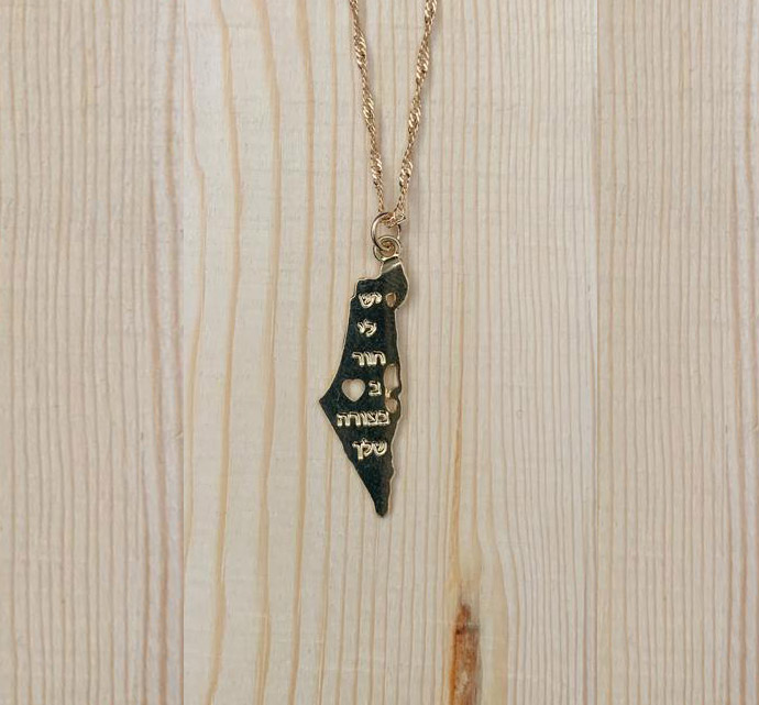 שרשרת מפת א”י חור בלב ציפוי זהב