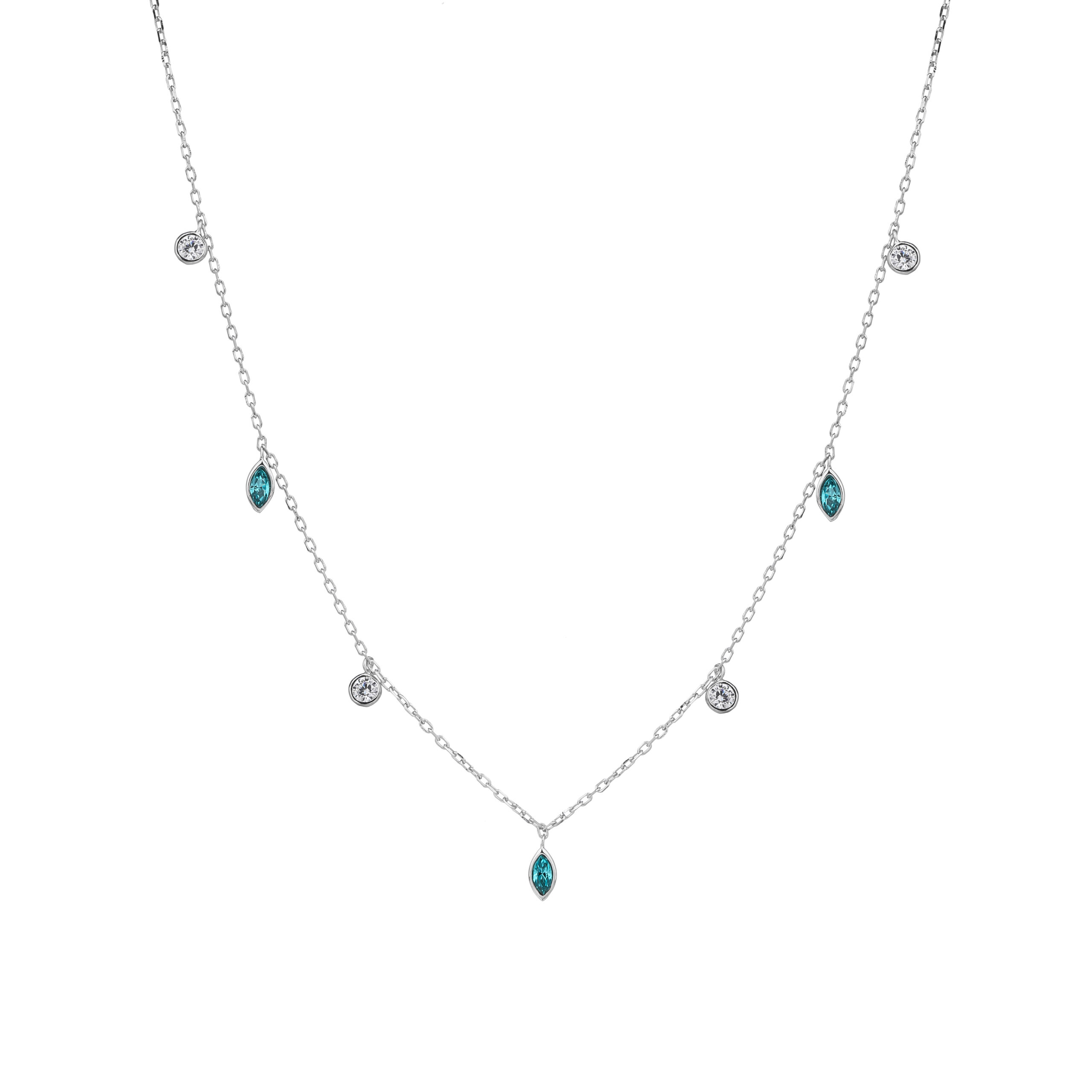 S925 sterling silver jewelry neckalce light blue cz stone size:35+7cm extention ,0.35 chain ,with small lobster lock and the tag.